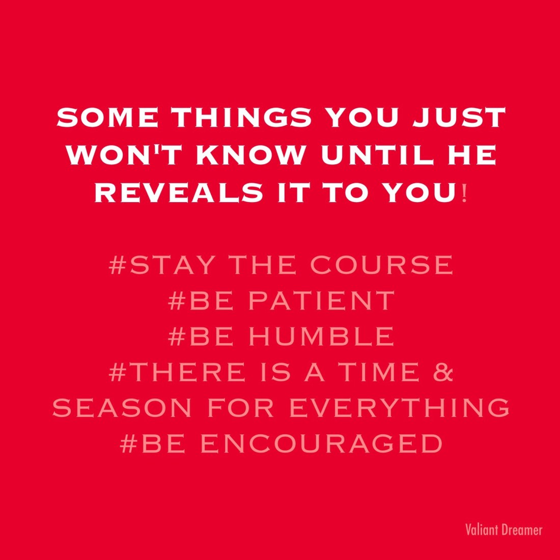 Is it time yet? Tiana Peterson Uncategorized August 11, 2017 1 Minute All things will be revealed in His time!#Ecclesiastes1:1 Share this: Instagram Click to share on X (Opens in new window) X Click to share on Facebook (Opens in new window) Facebook Click to email a link to a friend (Opens in new window) Email Click to print (Opens in new window) Print More Click to share on Tumblr (Opens in new window) Tumblr Like Loading... Published by Tiana Peterson Happy to be here! View all posts by Tiana Peterson Published August 11, 2017